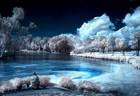 وعندها تكون النتائج غير مألوفة على الإطلاق، فالسماء التي نراها زرقاء مضيئة تكون غامقة! والأشجار والعناصر ذات المكونات الغامقة تكون فاتحة! وقد يضفي المُصوِّر بعض التعديلات على الصور لإضفاء مزيد من السحر والغموض عليه: