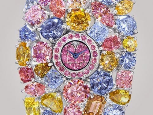 كشفت محلات "جراف دايموند" البريطانية، هذا الأسبوع، عن أغلى ساعة نسائية والمرصعة بألماس نادر زنة 110 قيراطات، والتي يبلغ ثمنها 55 مليون دولار أمريكي.