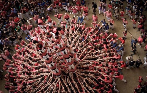 هذا التقليد المعروف في منطقة كتالونيا يعود إلى نهاية القرن الثامن عشر وعرف باسم "بناء القلاع"، ويقوم كل فريق ببناء البرج بعناية حيث تكون قاعدة البرج البشري للأشخاص الأثقل وزنًا بينما يتم وضع الأخف وزنًا في الأعلى، وتجري المسابقة في مدينة طراغونة 60 ميلا إلى الجنوب الغربي من برشلونة.